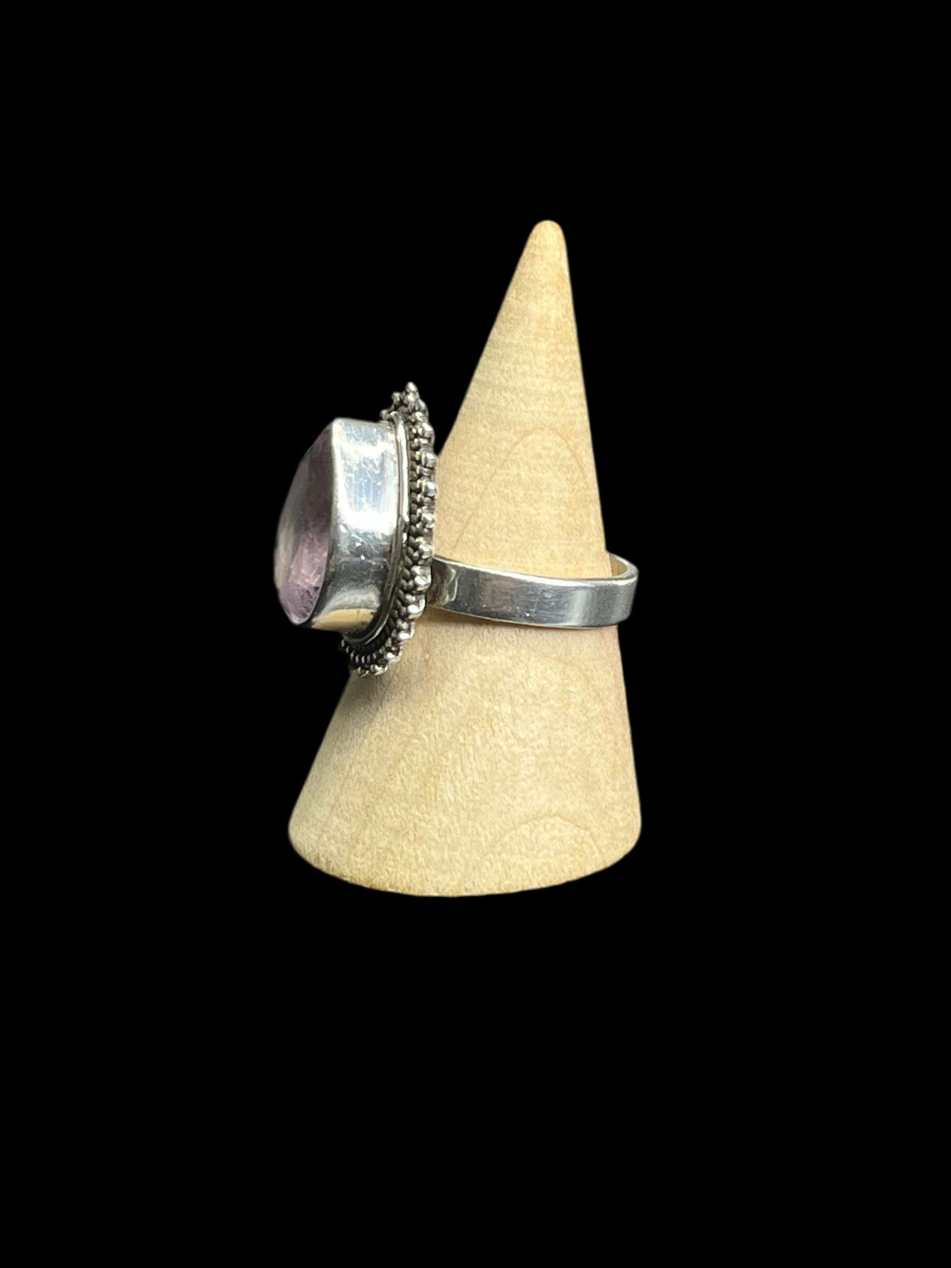 Elevate your style with our Amethyst Statement Ring! Designed with a stunning pear-shaped, trillion cut amethyst set in sterling silver, this size 9 ring is the perfect statement piece. Experience the luxurious look and feel of this pre-loved ring at a discounted price. Order now and make a bold statement today!
