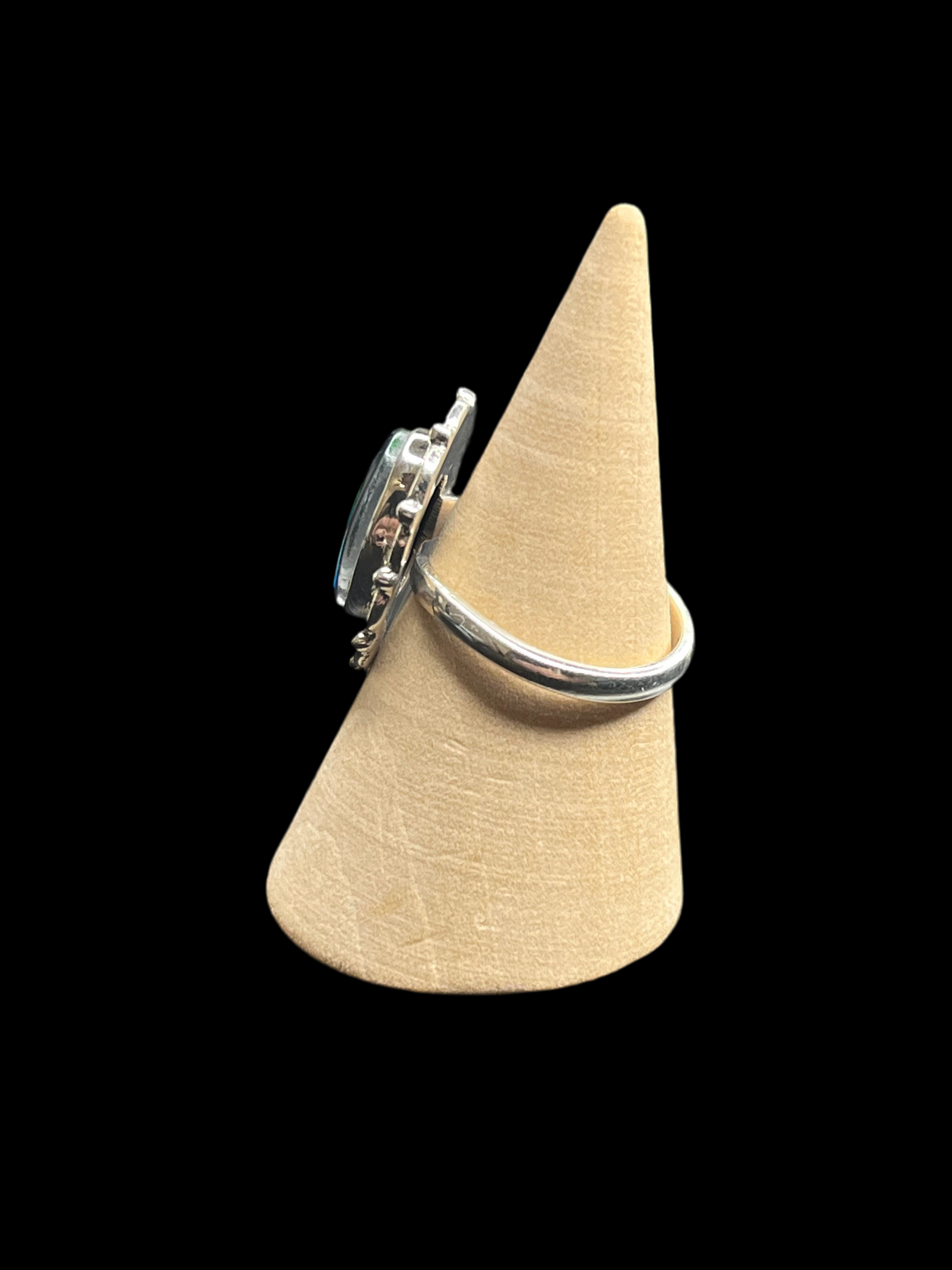 Discover the stunning beauty of the Aurora Opal Checker Rings! Crafted with sterling silver and adorned with a captivating combination of opal and black onyx, these rings offer a touch of Southwestern style. Adjustable to fit any finger, they are perfect for adding a unique and alluring touch to any outfit.