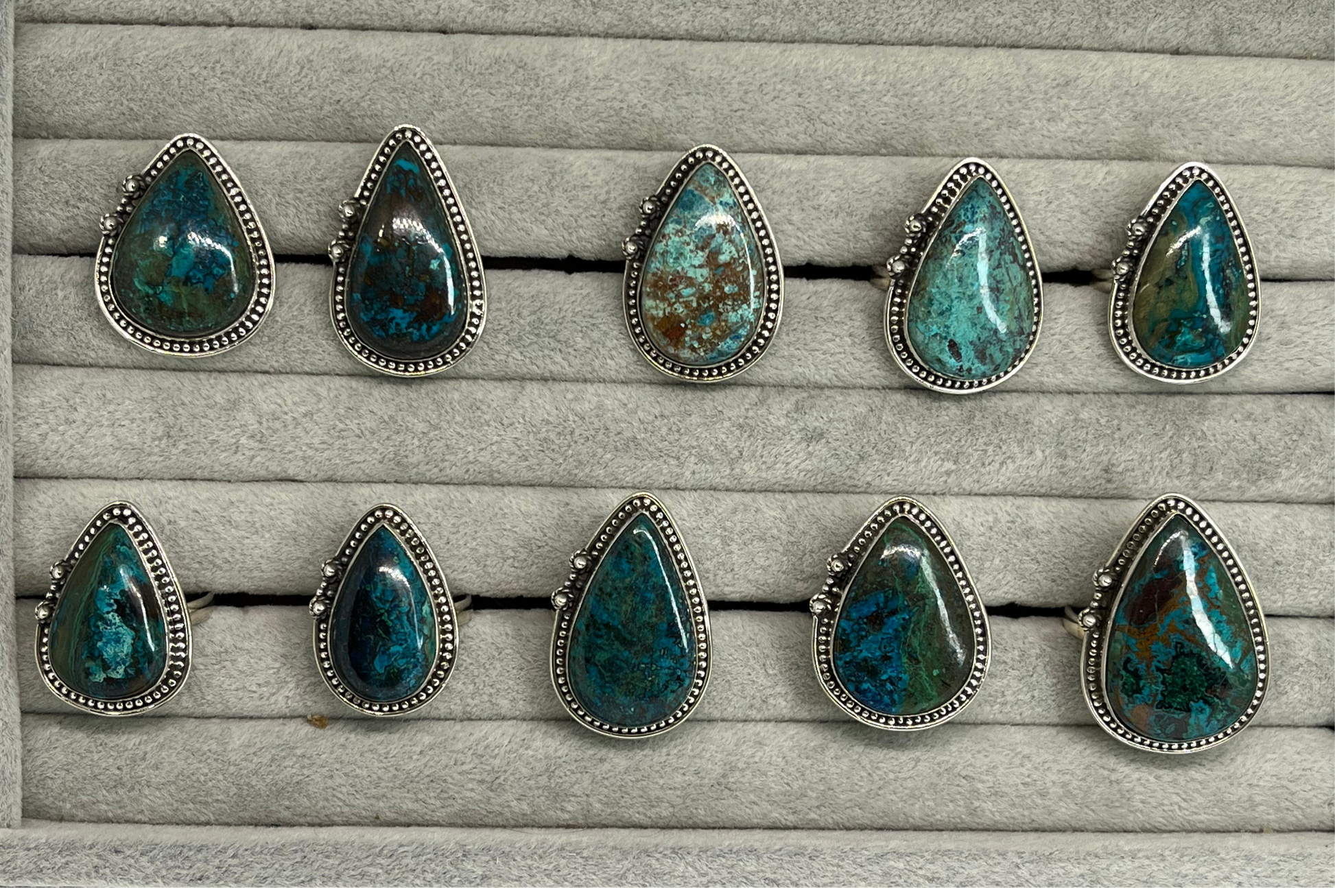 Elevate your style with our stunning Azurite Malachite Sterling Silver Rings! Crafted with genuine Azurite Malachite and high-quality sterling silver, these teardrop rings make a bold statement. Available in various sizes, they are the perfect accessory to add a touch of elegance to any outfit.