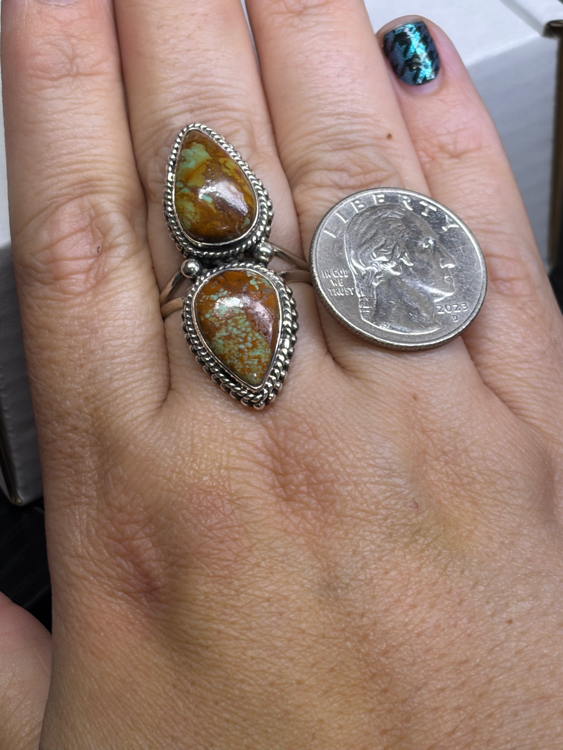Experience the beauty and power of this Genuine Kingman Turquoise Statement Ring. Handcrafted from sterling silver, this ring exudes elegance and grace. The stunning size 11 stone is a statement piece that will make you stand out and add a touch of royalty to any outfit.