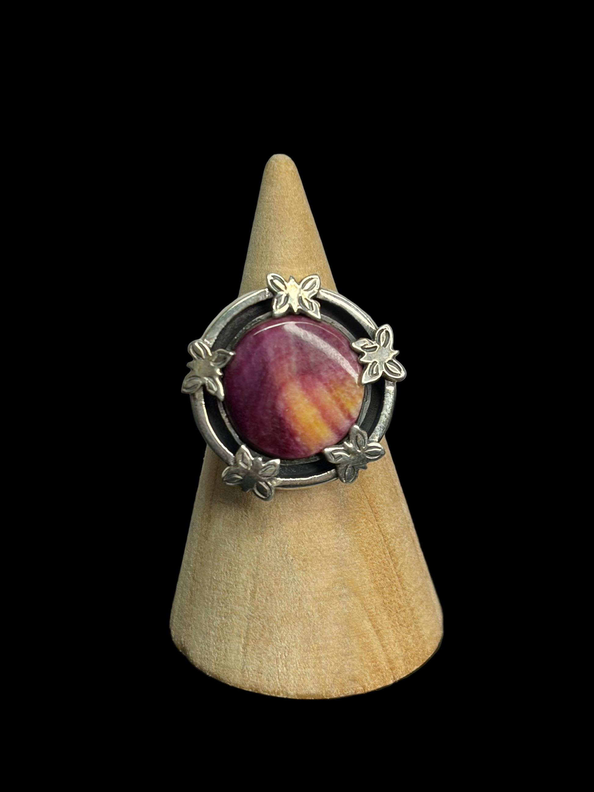 Add a touch of unique elegance to your style with our Handcrafted Butterfly Border Rings. These artisan made rings feature a sterling silver closed back design and the choice of Kingman Turquoise or Purple Spiny stones. Embrace the beauty of handmade craftsmanship and express your individuality with these one-of-a-kind rings!