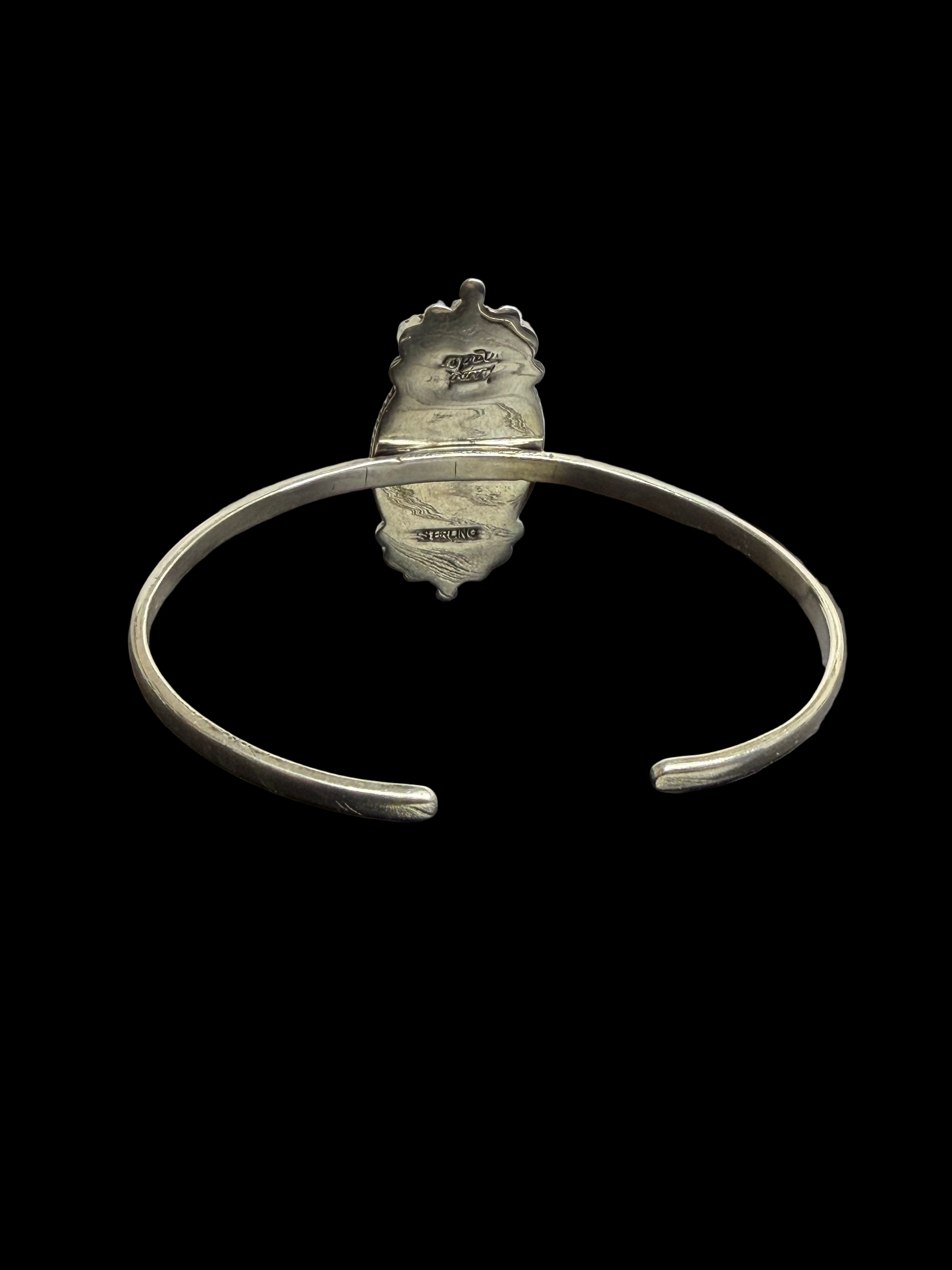 This stunning handcrafted bracelet features genuine conch shell with beautiful swirls, six stones of Kingman Turquoise, and a sterling silver closed back for durability. With a cuff that sits at 7 inches and plenty of flex, it's a versatile and stylish addition to any jewelry collection.