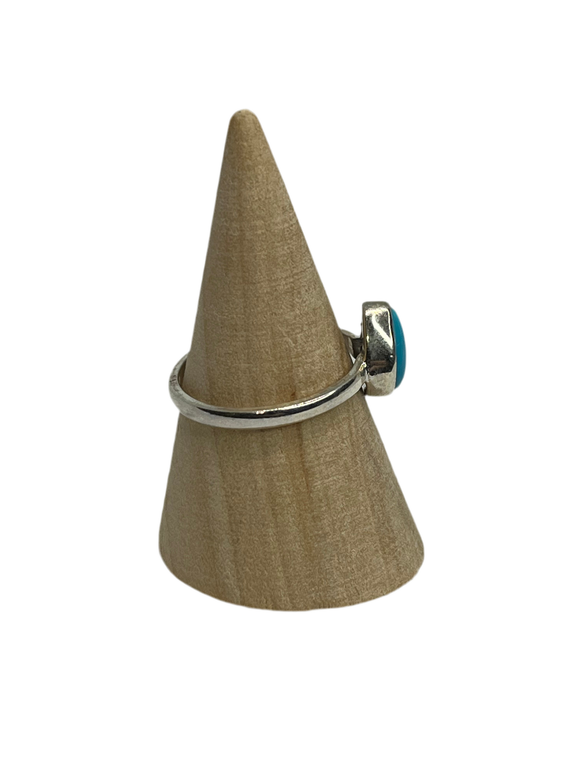 Indulge in the beauty of this Sleeping Beauty Turquoise Ring. From the now closed mine in Arizona, this petite stone radiates a vibrant blue. Set in sterling silver, this ring is sure to add a touch of elegance to any outfit. Available in size 9.5.