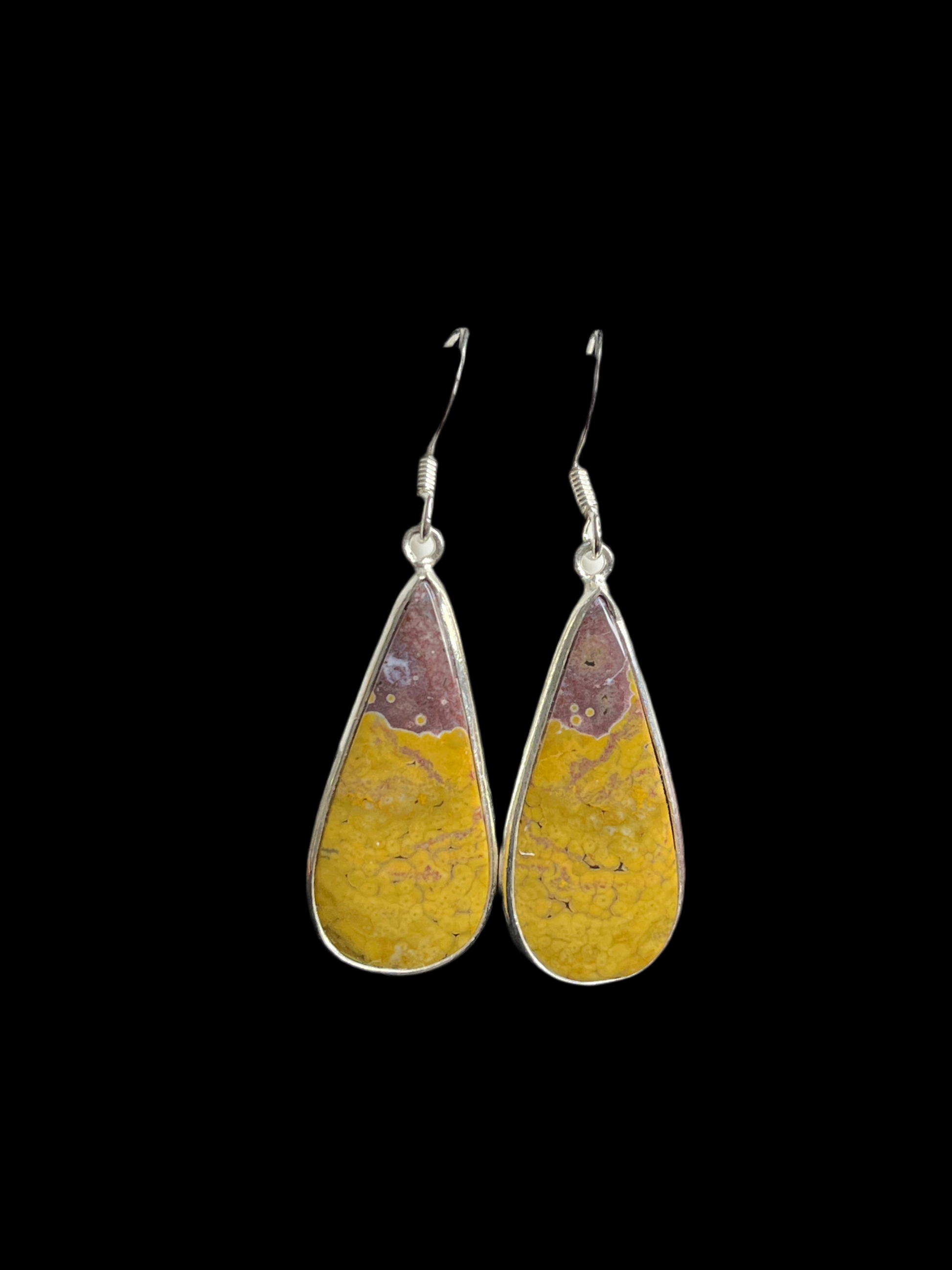 Get ready to make a statement with our Teardrop Natural Stone Earrings! Choose from Bumblebee Jasper or Mookaite Jasper for a stunning pop of color. The teardrop stones, open back pieces, and gorgeous banding all combine for a unique and eye-catching accessory. Elevate any outfit with these one-of-a-kind earrings.