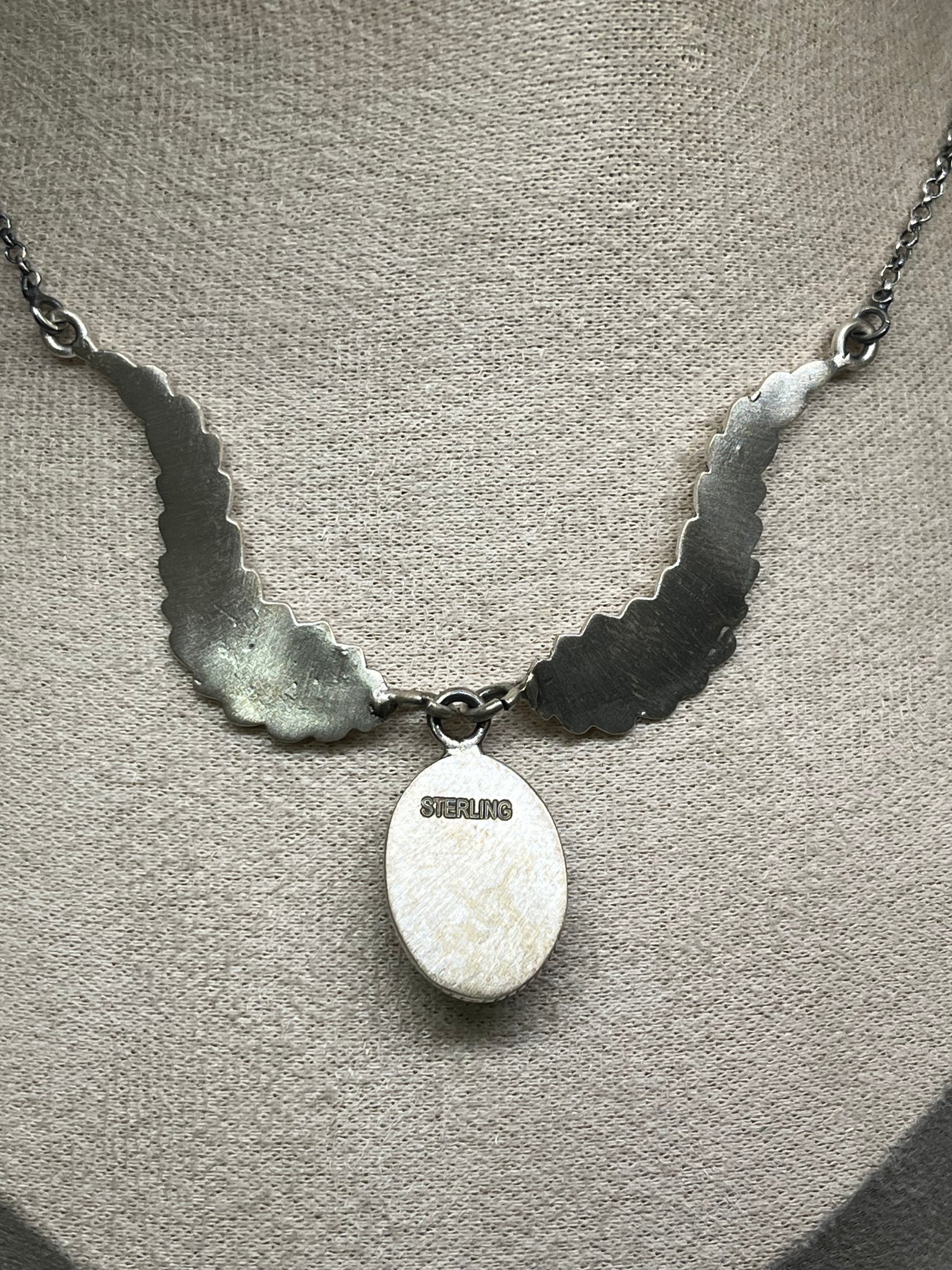 This stunning Y-drop necklace features a genuine Mojave turquoise drop, complemented by two silver feather charms on each side. The adjustable length of 16 to 18 inches makes it versatile and perfect for any outfit. Crafted with stamped STERLING, this necklace is a must-have for any jewelry collection.