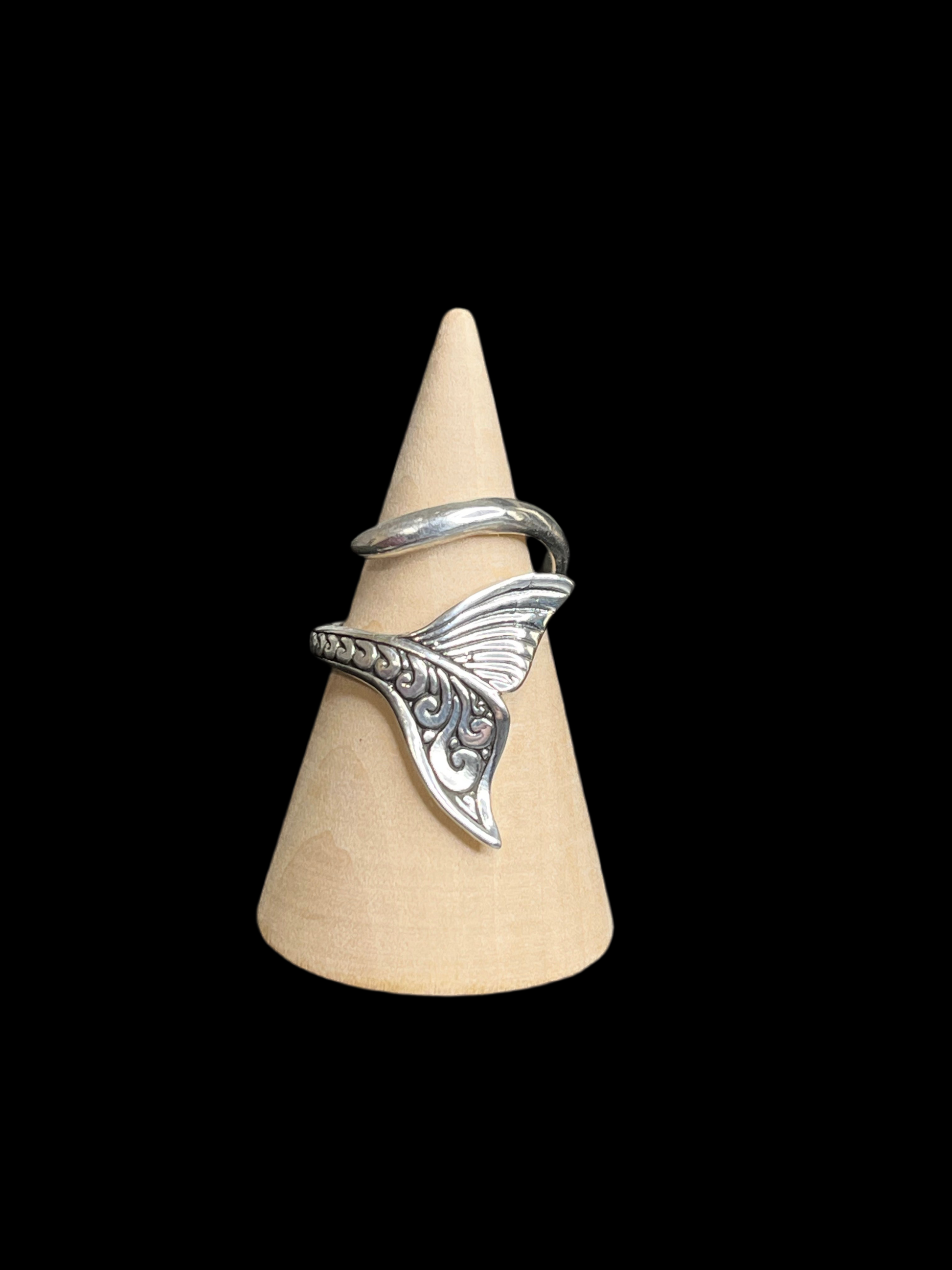 Indulge in the intricately crafted Whale Tail Silver Ring. Made with sterling silver, its super detailed design will mesmerize you. And with its adjustable feature, one size fits most! Perfect for adding a touch of elegance to any outfit.