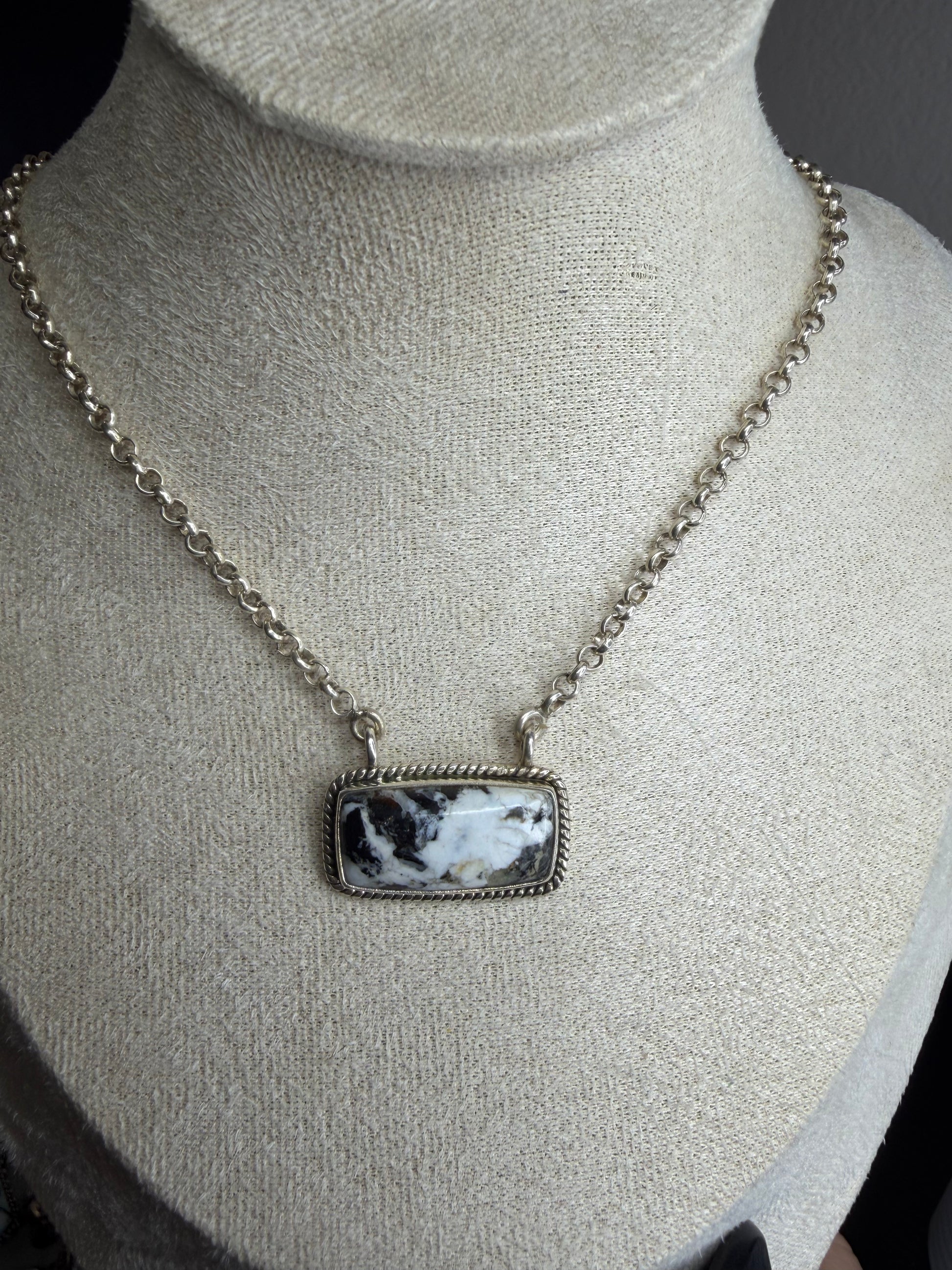 Upgrade your jewelry collection with our White Buffalo Bar Necklace. Crafted with sterling silver and featuring a genuine white buffalo turquoise, this necklace will add a touch of elegance to any outfit. The open back design and adjustable chain make it a versatile piece for any occasion.